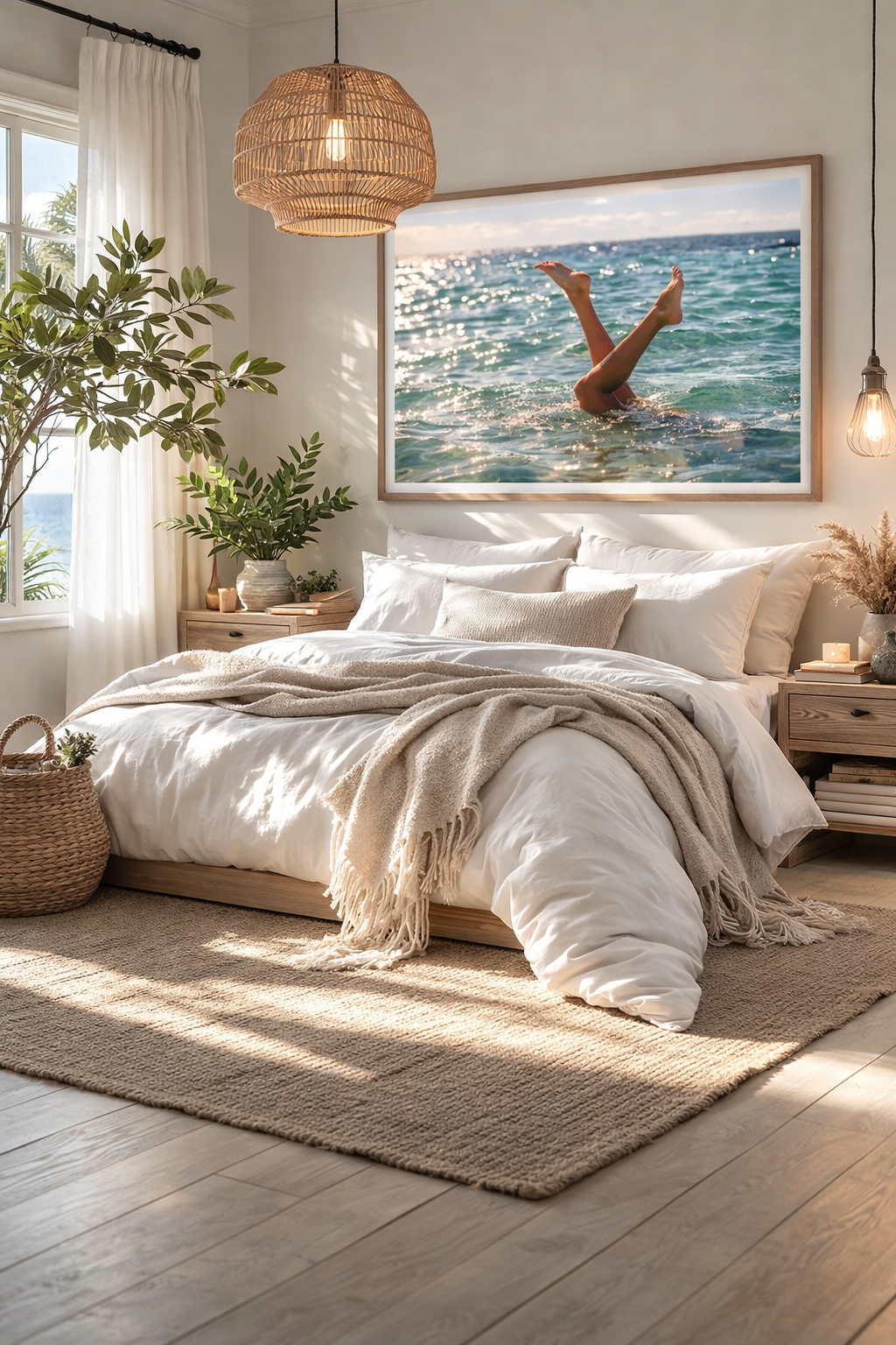 The Weekend captures that carefree, sun-soaked moment when time slows and nothing matters but the water and the light. A relaxed coastal statement piece that brings effortless vacation energy into any space.