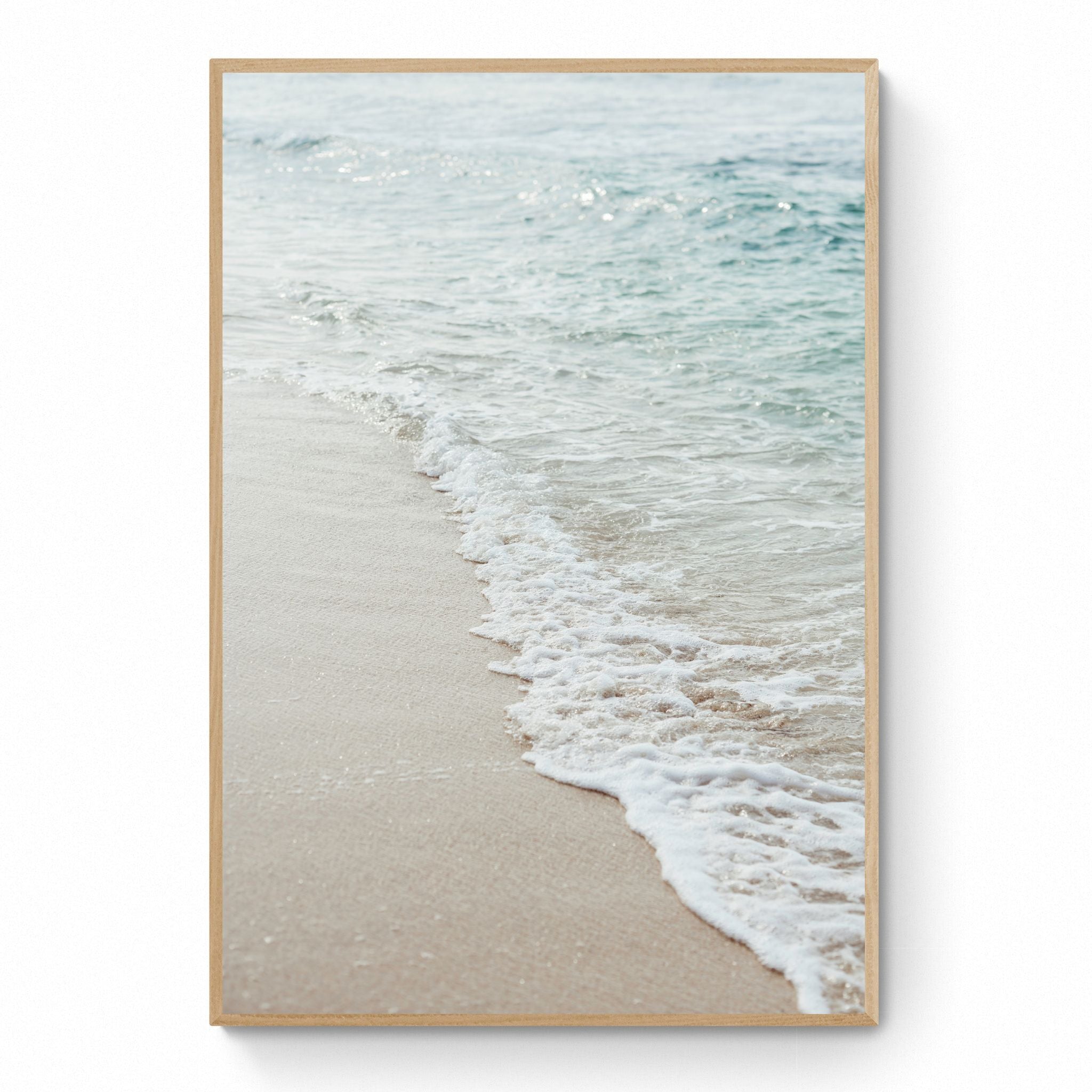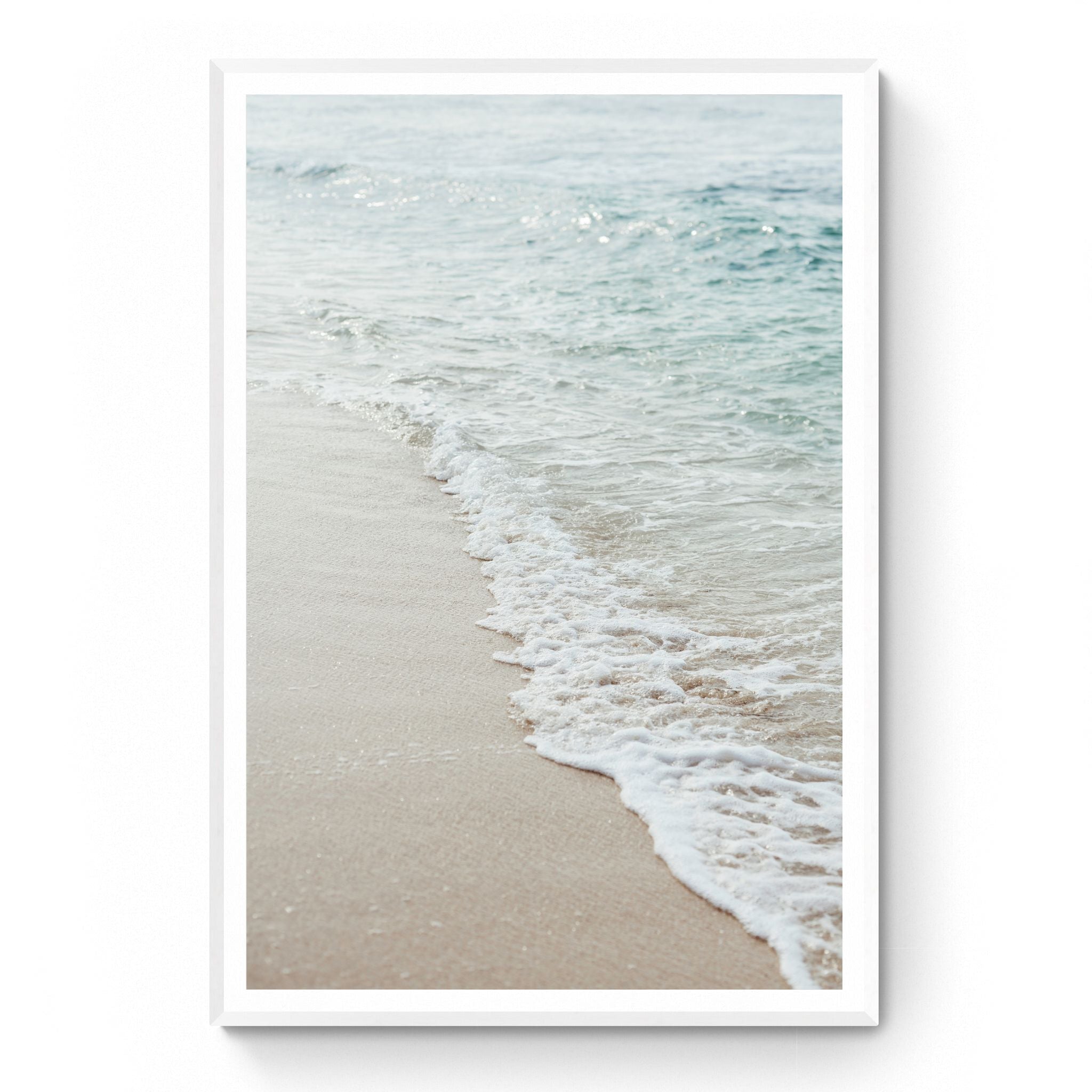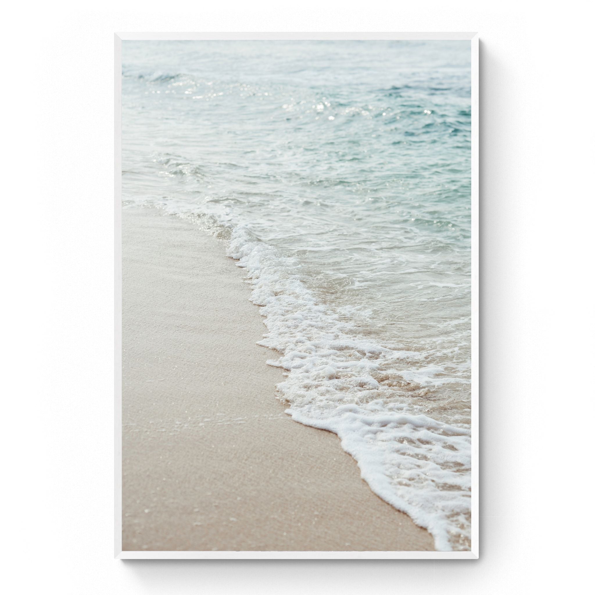 The shoreline of Bali, a serene expanse where the soft, light blue hues of the water kiss the sandy shore.