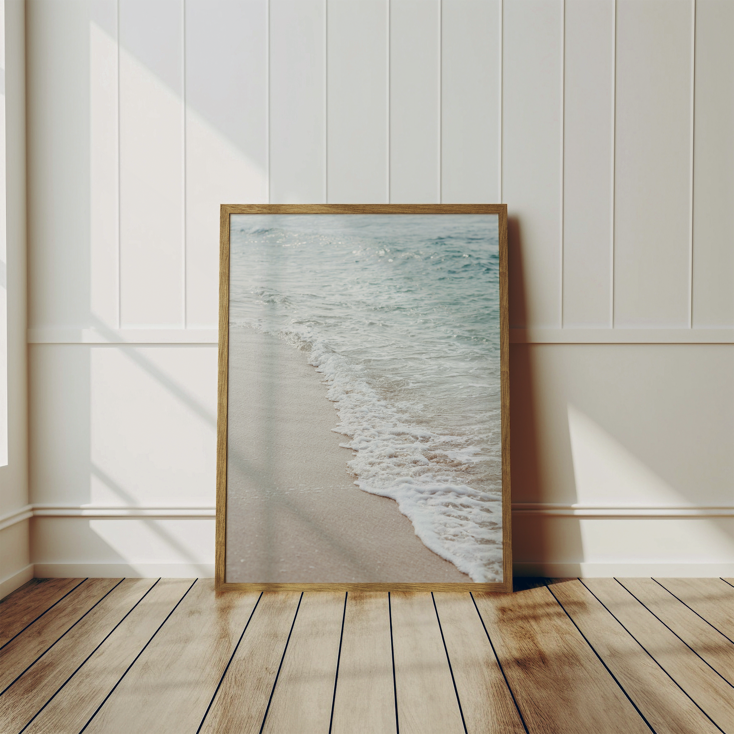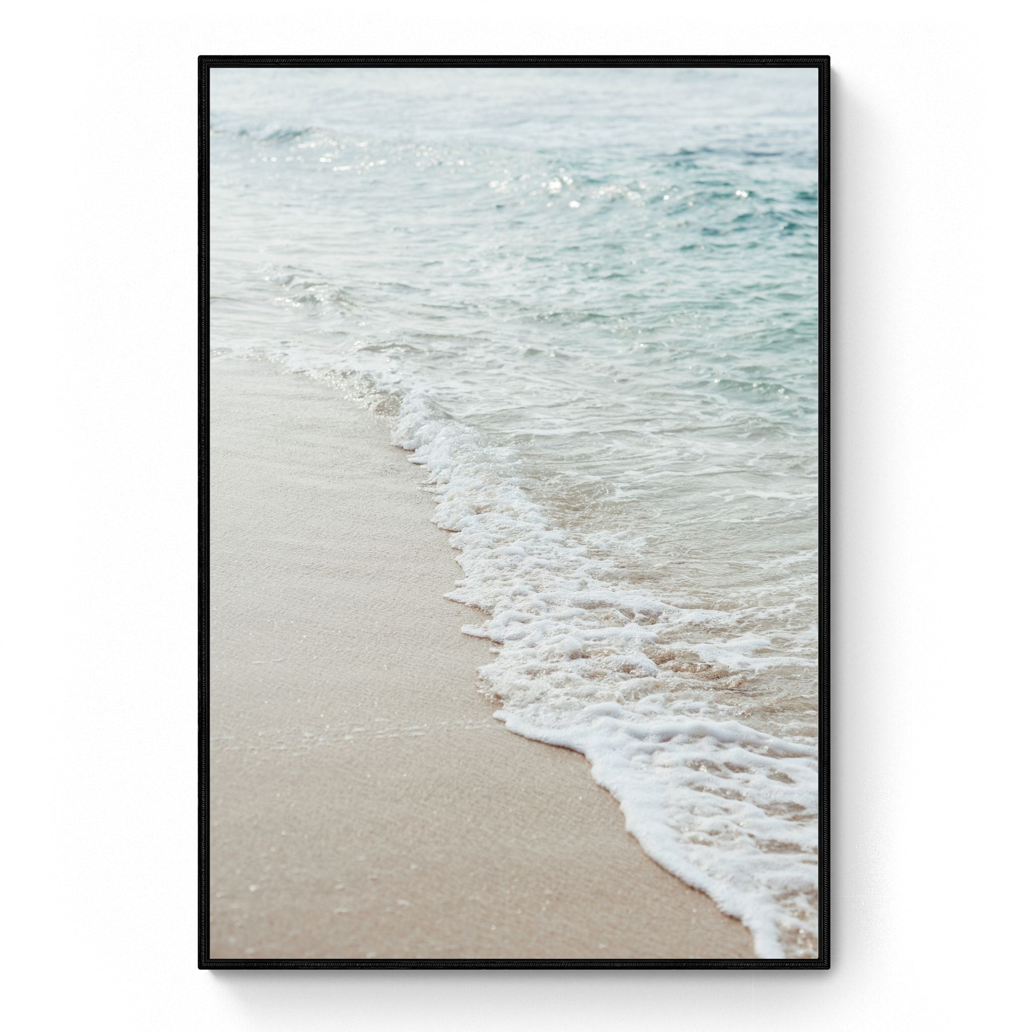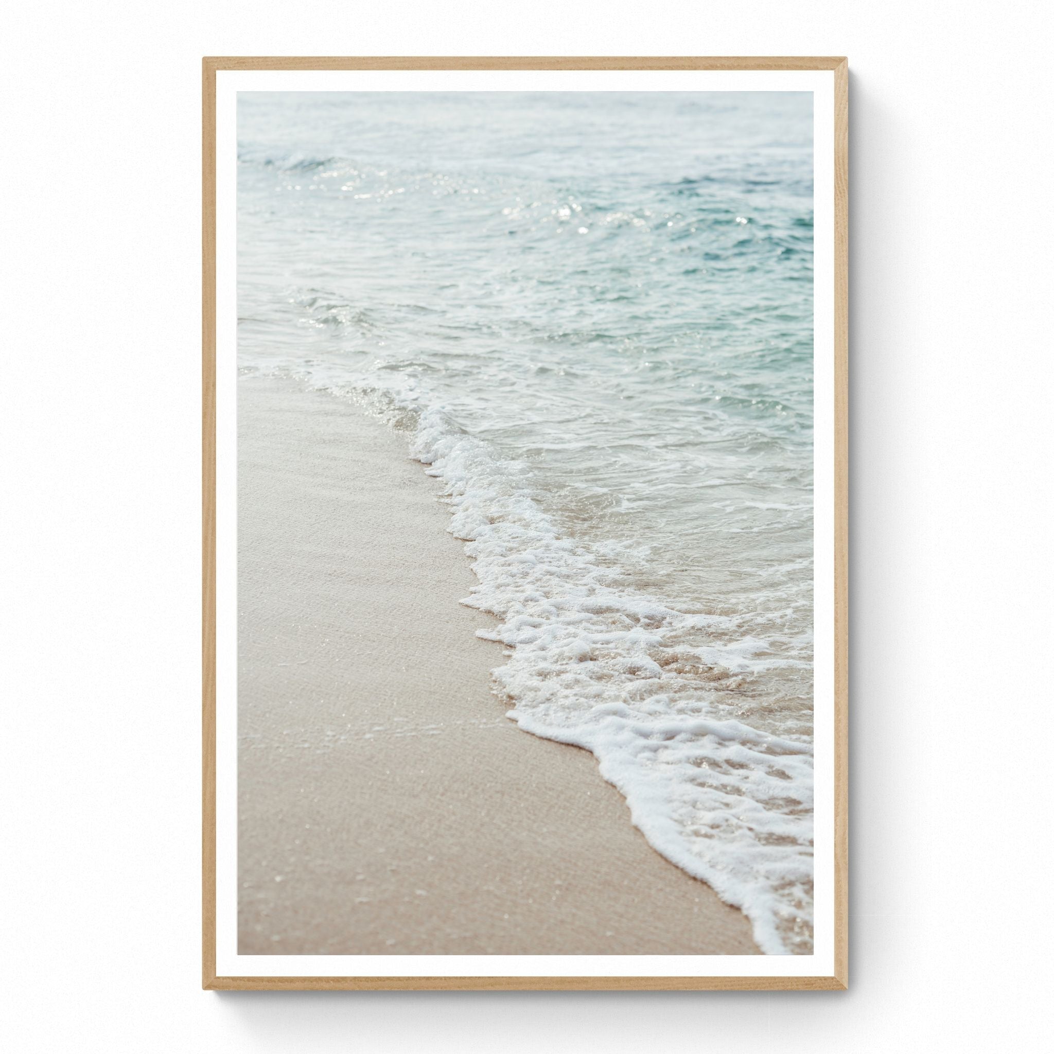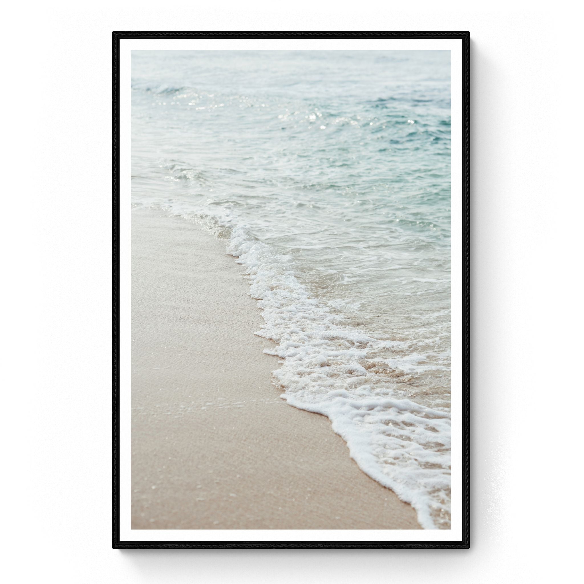 The shoreline of Bali, a serene expanse where the soft, light blue hues of the water kiss the sandy shore.