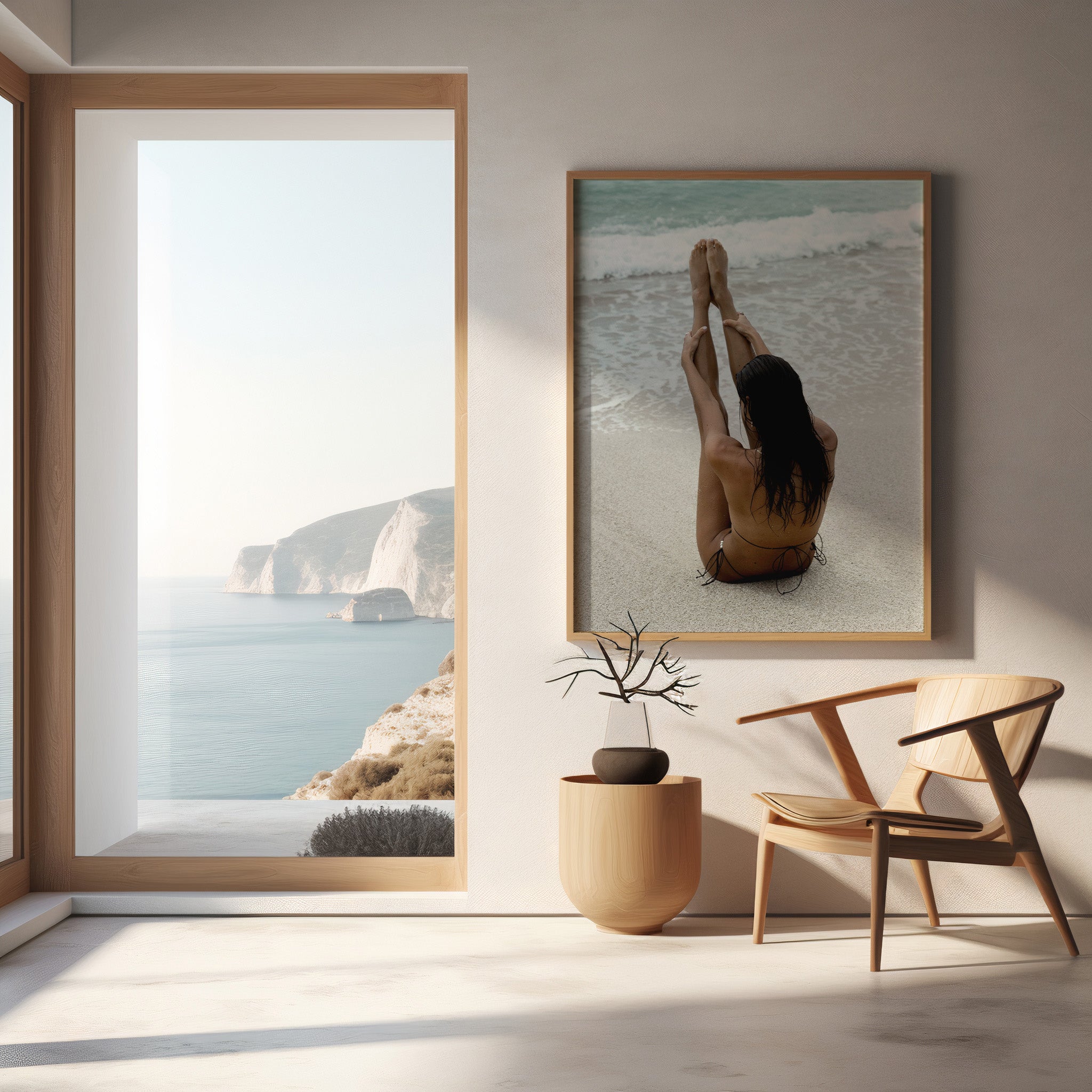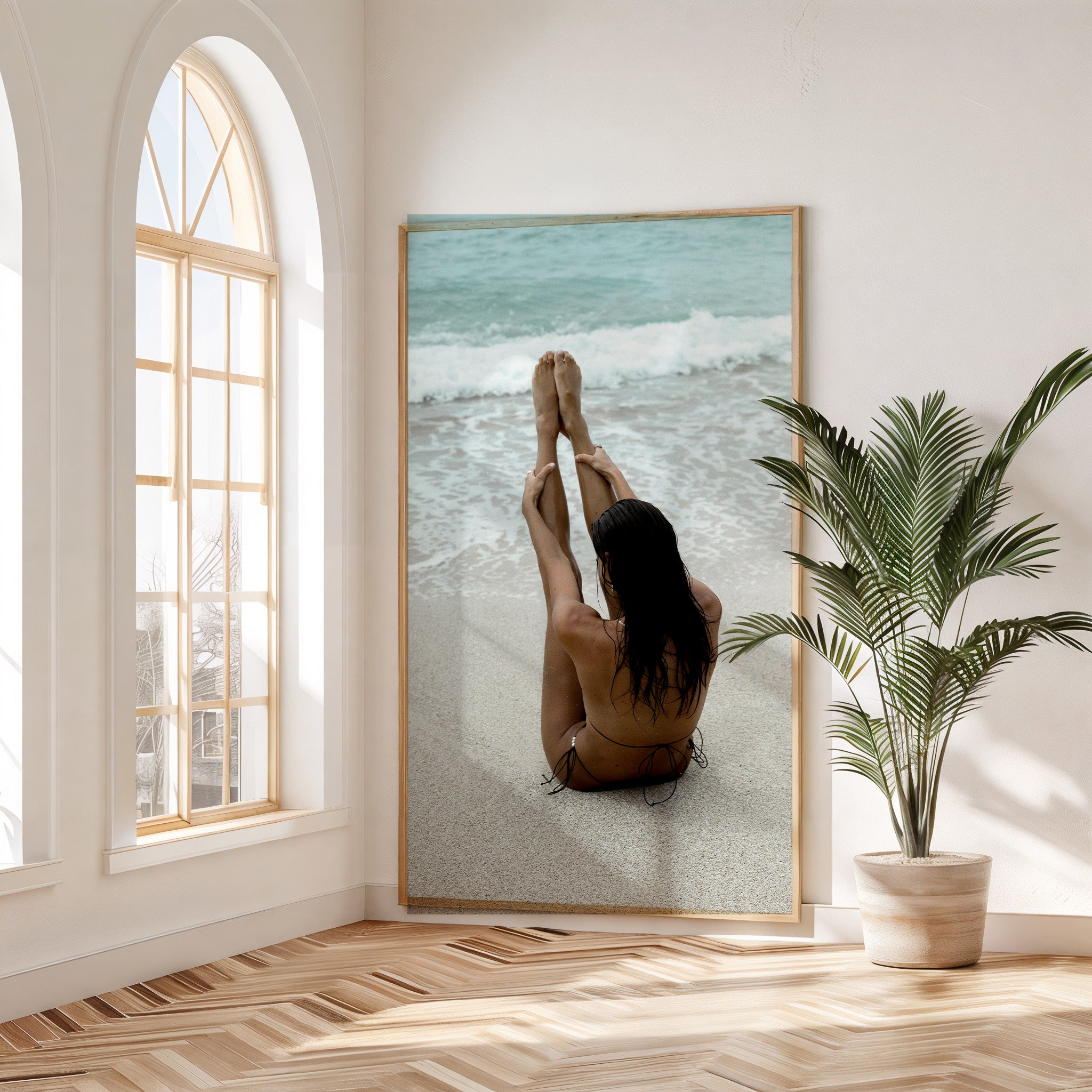 Her body grounded in the moment, perfectly aligned with the rhythm of the shoreline, the rhythmic waves mirroring the rise and fall of her breath