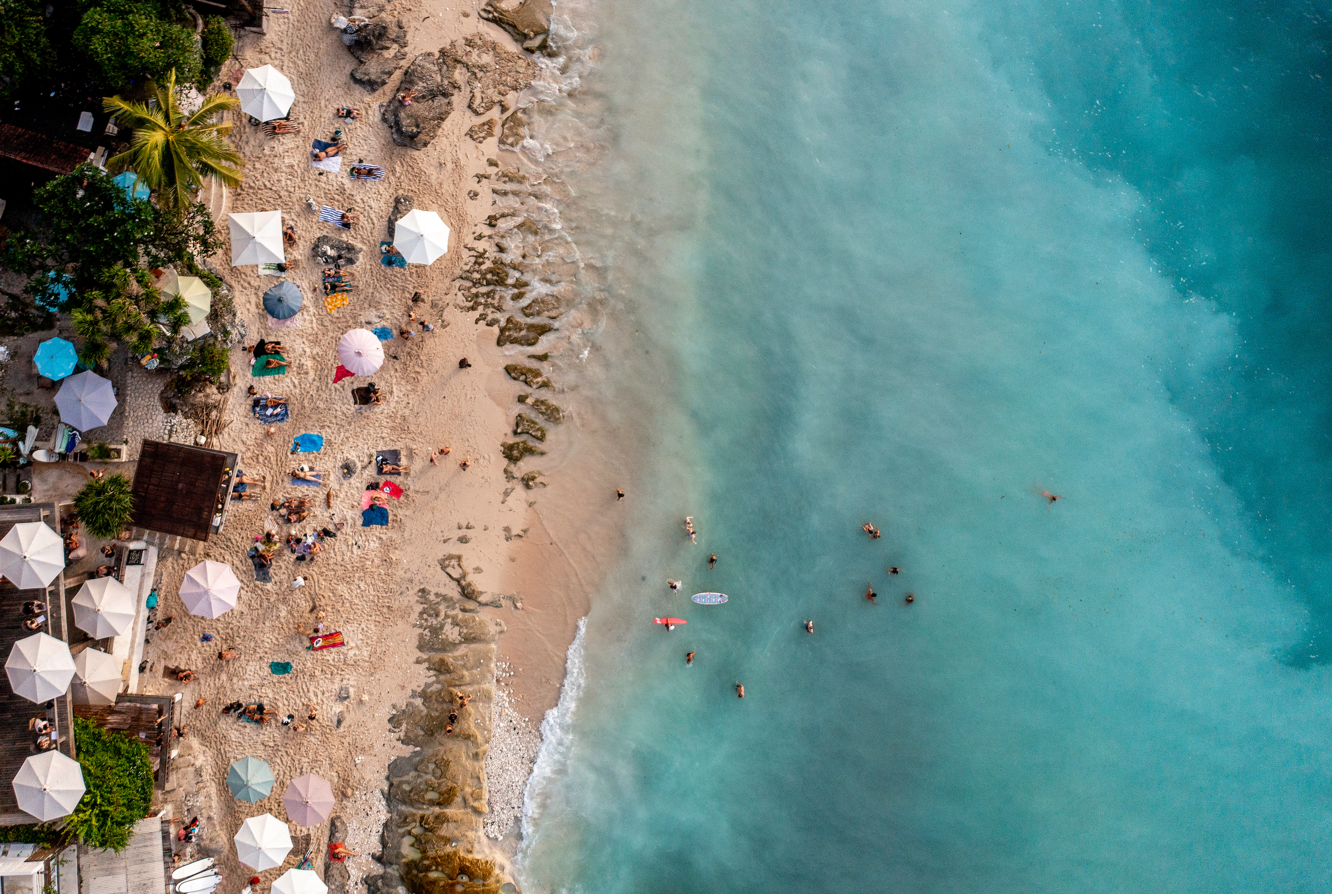 One of our favourite places in Bali! A place to gather with friends for surf, sunset and seafood on the beach! This Ariel image captures the essence of this magical spot which can bring back a nostalgic memory of your own or ad colour and life into your space!