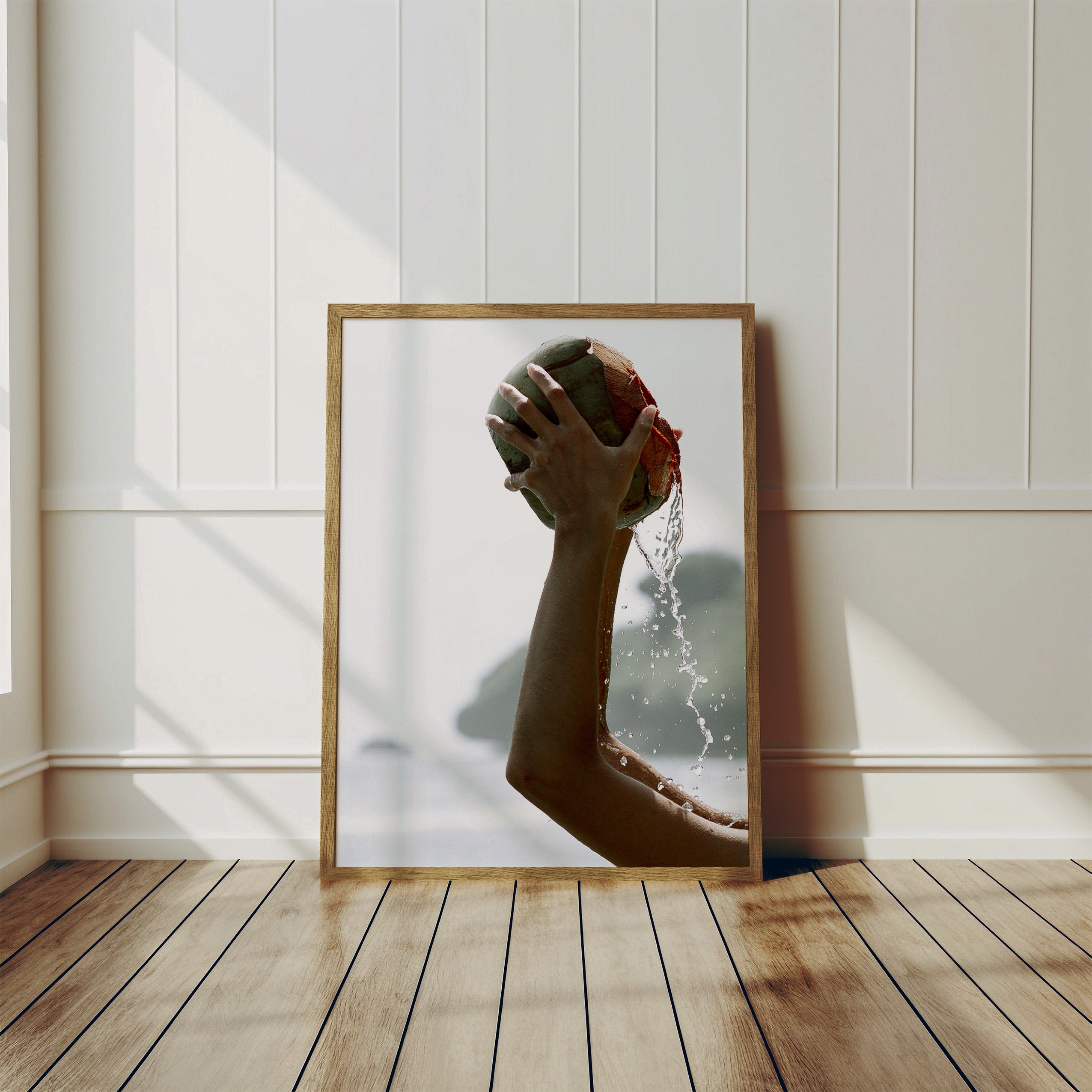 Sun-kissed and carefree, she lets the cool rush of coconut water cascade over her skin, I caught her in that exact moment, the pure, messy joy of it all. It’s the kind of fleeting, unfiltered memory that makes days like this unforgettable.