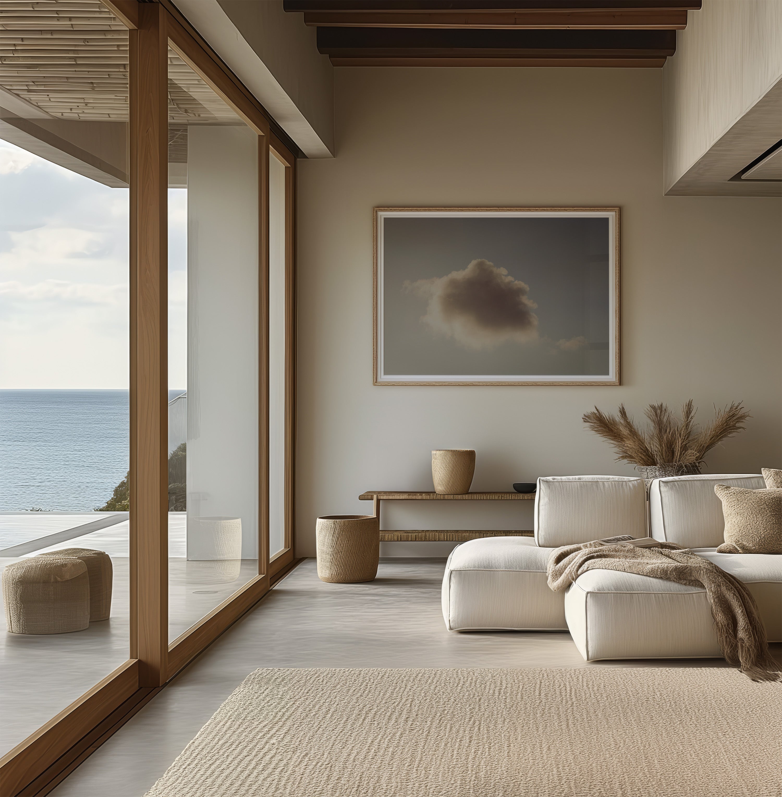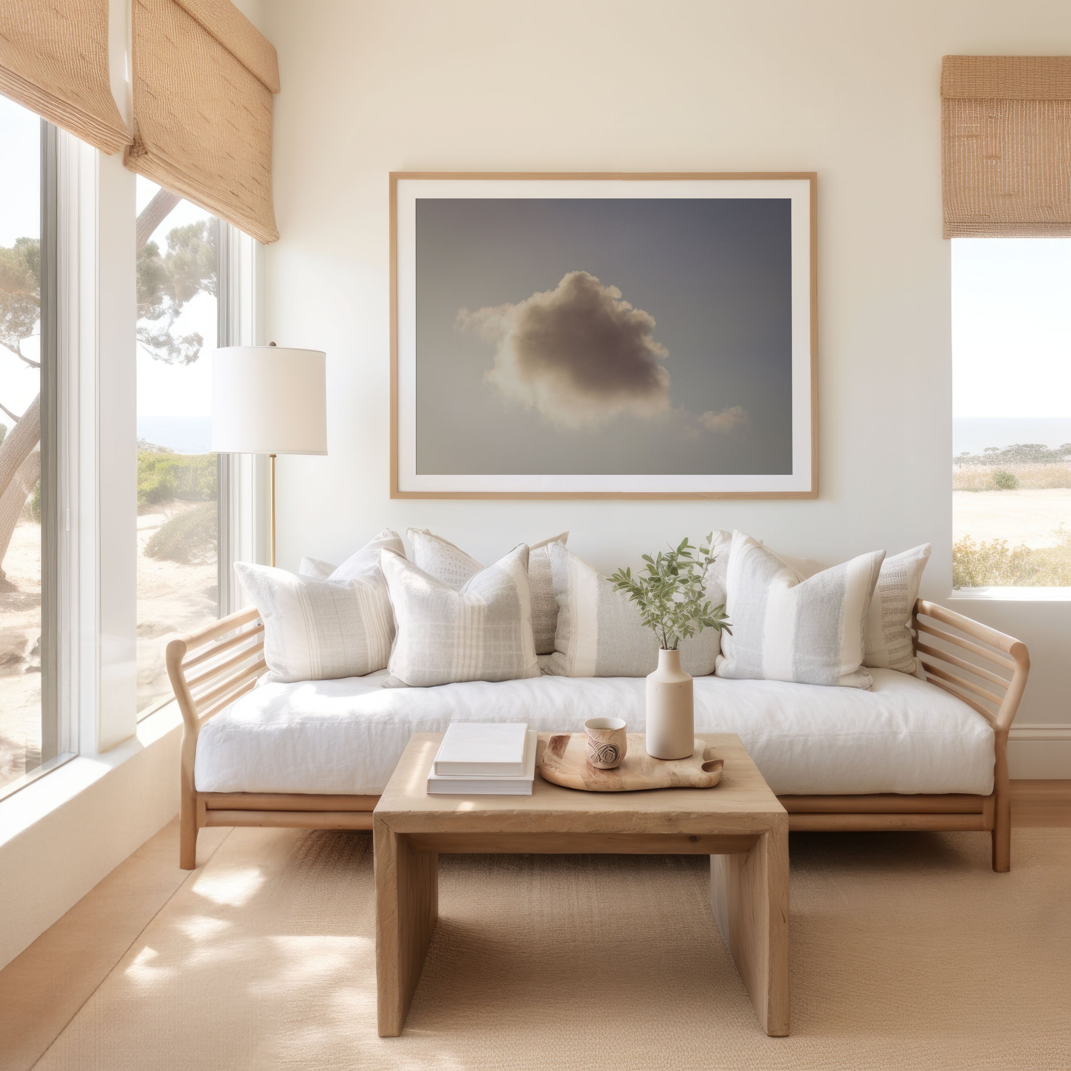 This serene and timeless composition invites the viewer to escape into a moment of quiet reflection and infinite possibility.