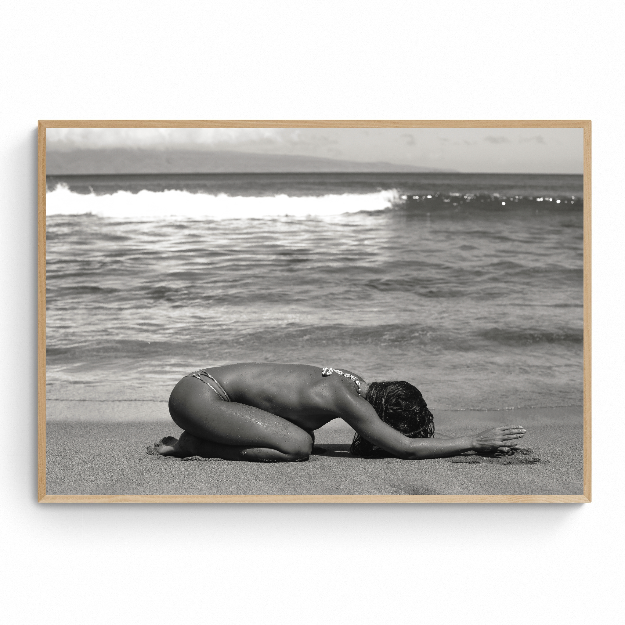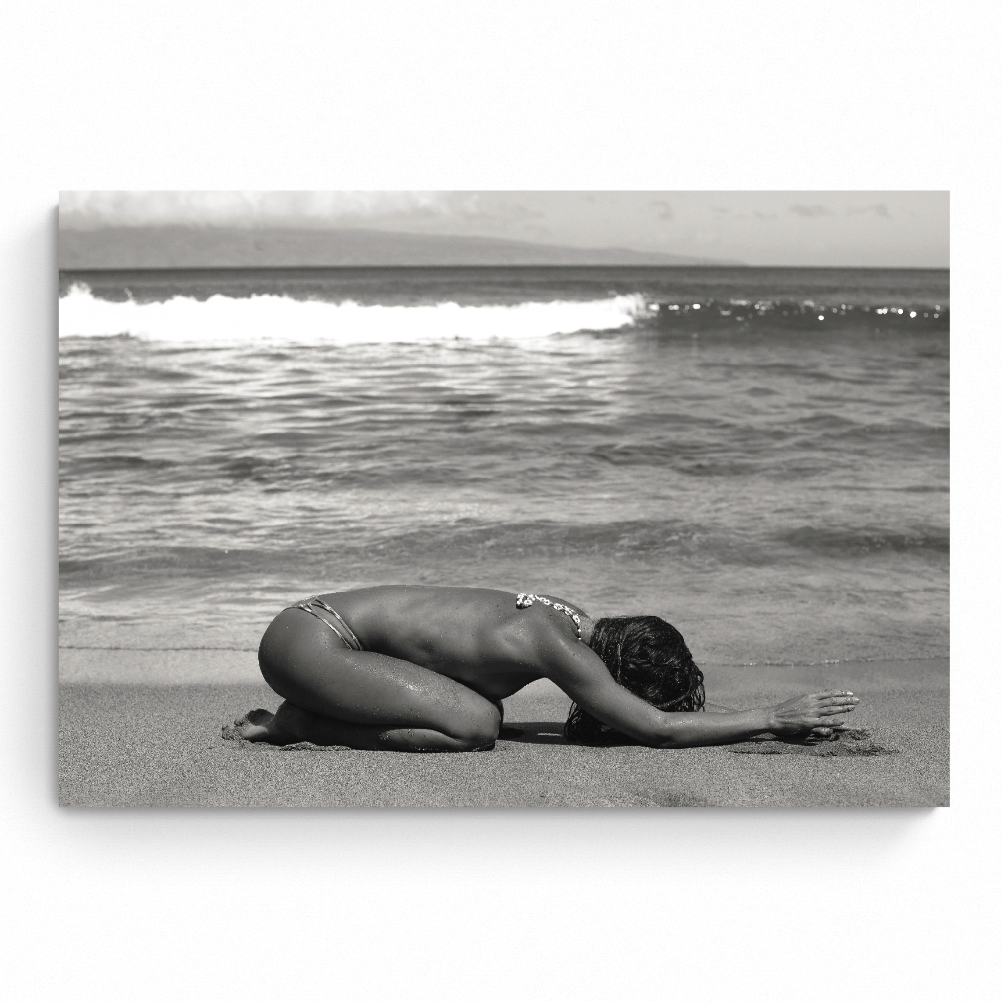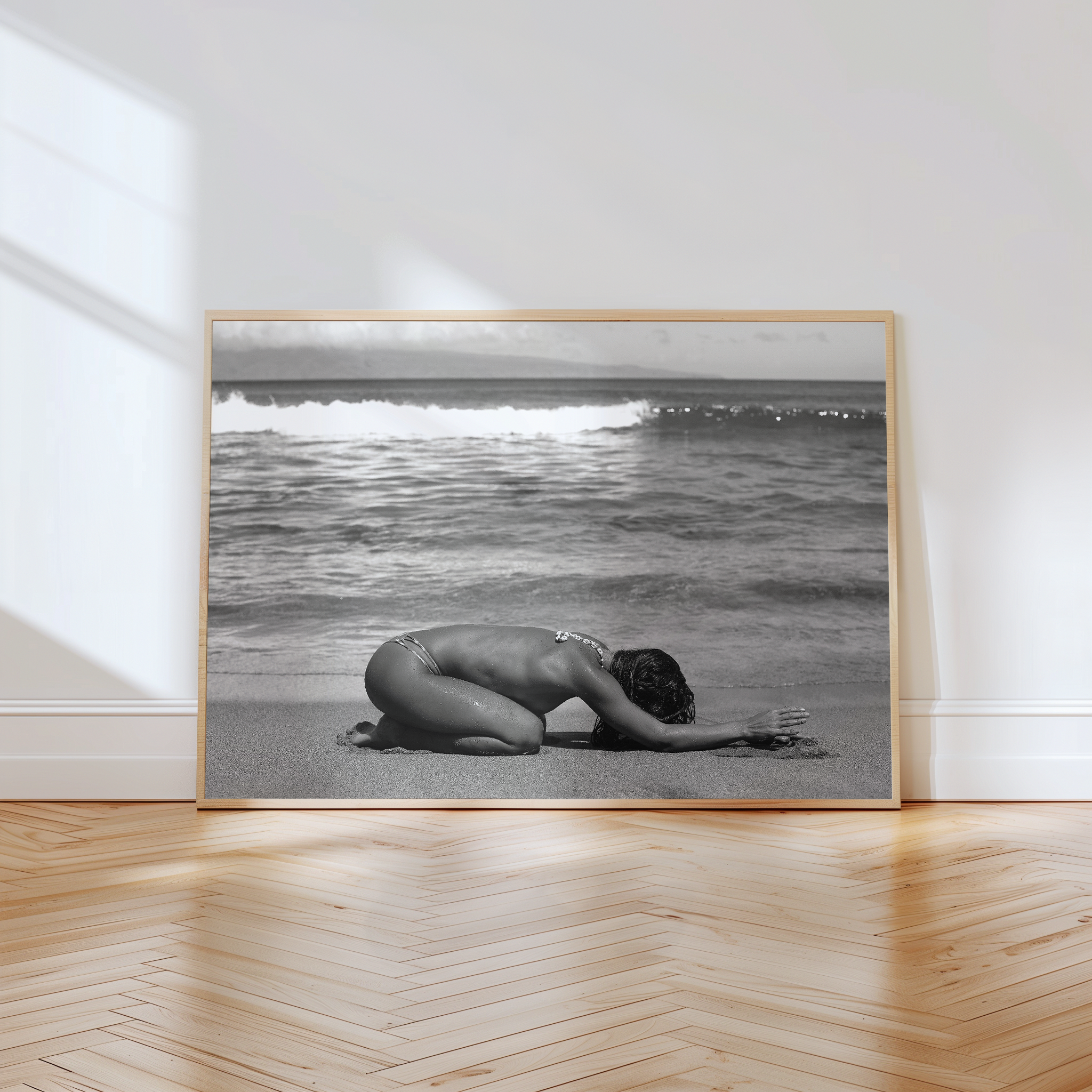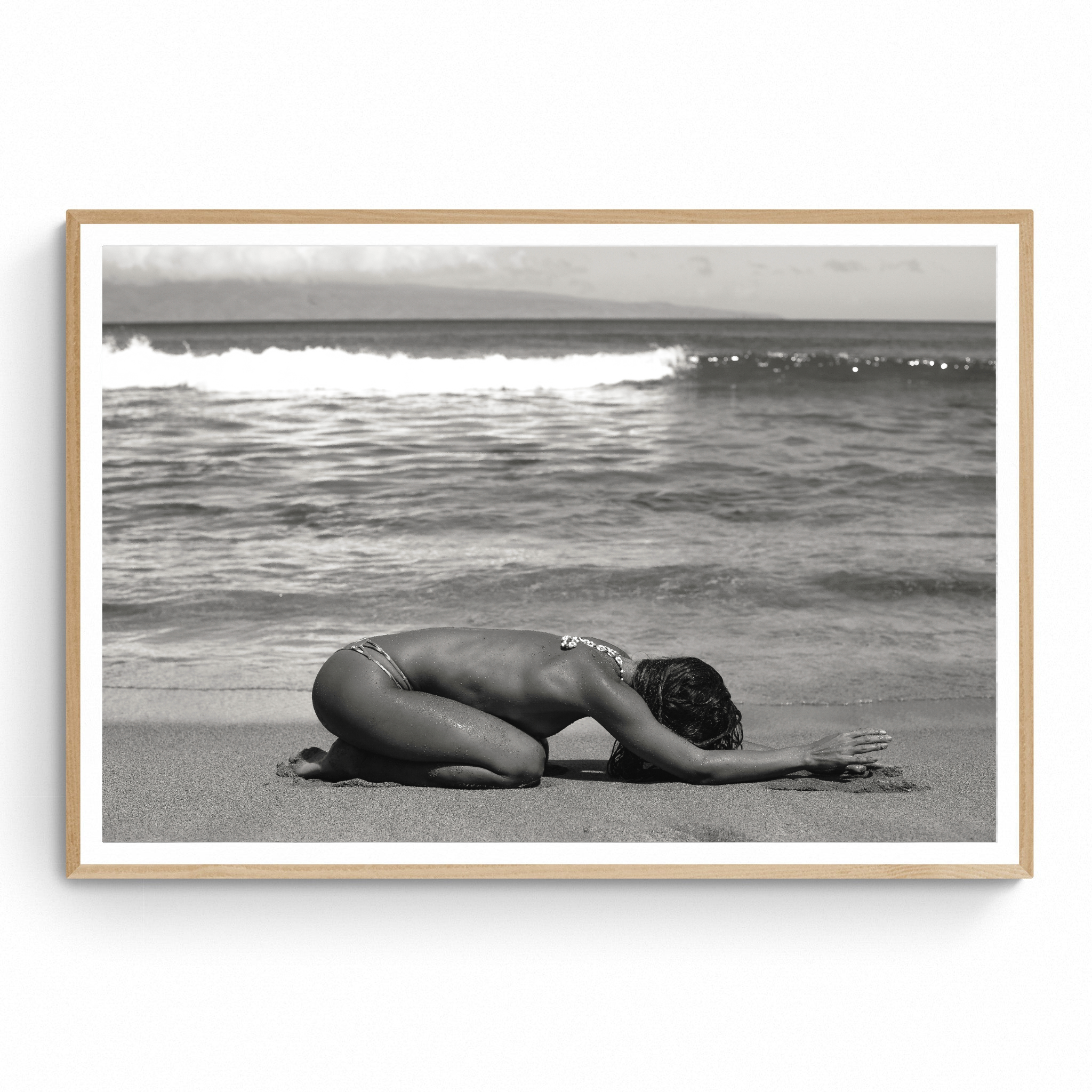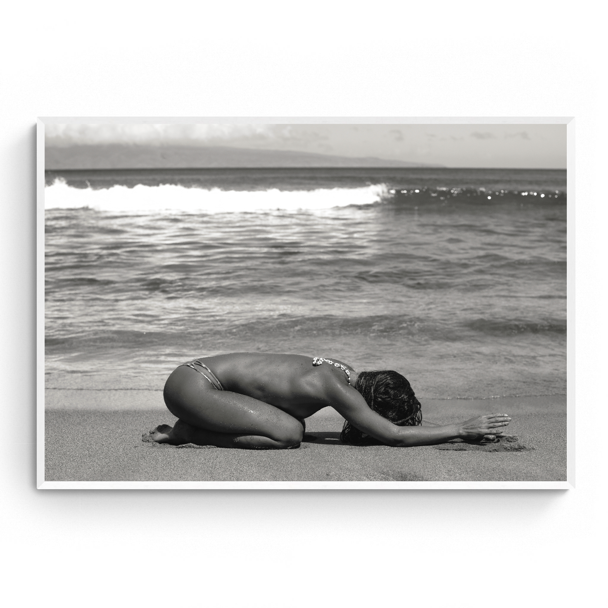 Taken on a beautiful warm sunny morning on Maui. My friend Danielle and I were shooting, swimming and enjoying the calmness of the early morning. This image captures a peaceful moment of surrender and connection. The waves gently ebbed and flowed behind her allowing for a true moment of connection to earth. The moment represents groudning and stillness, which has always been an essential ritual in starting my day.