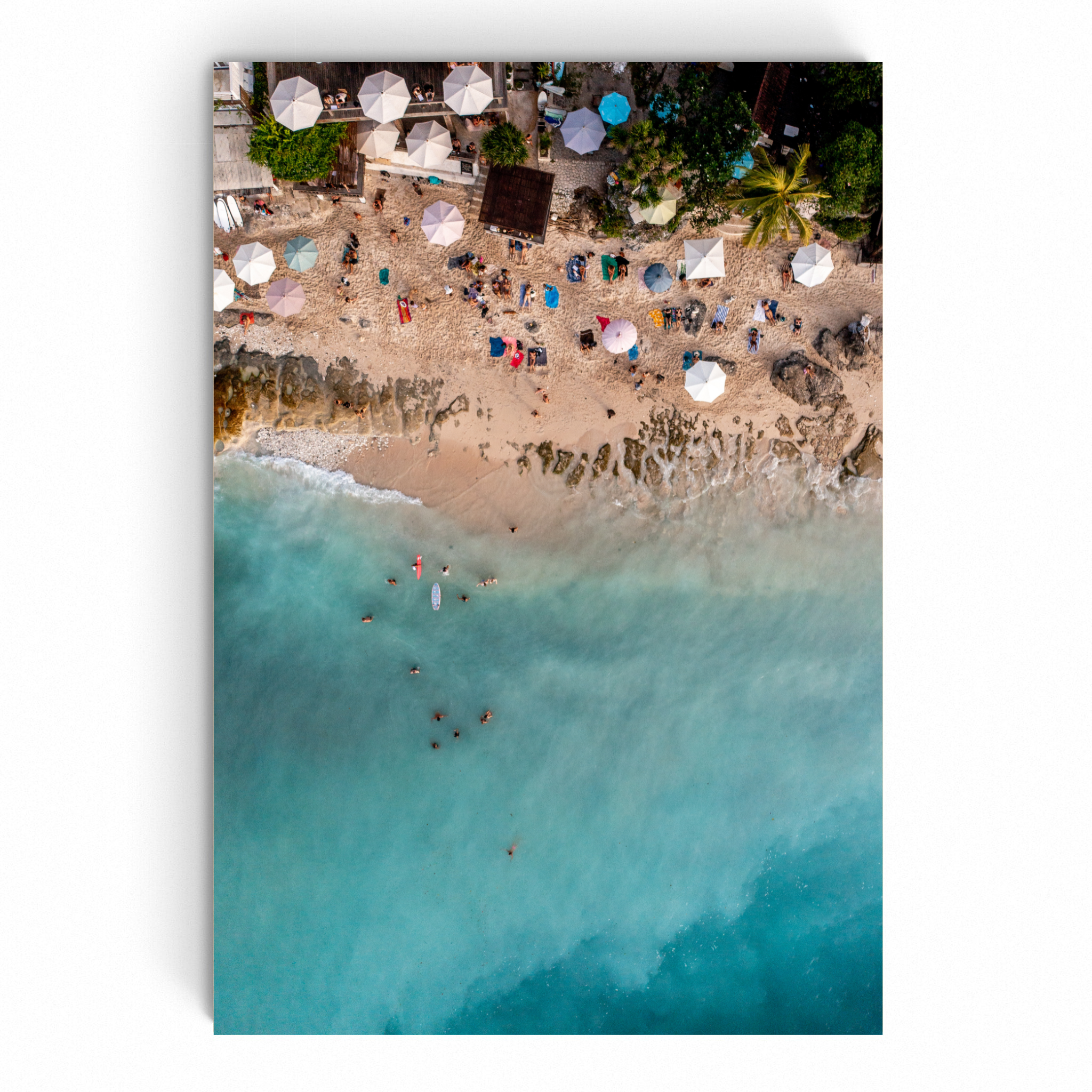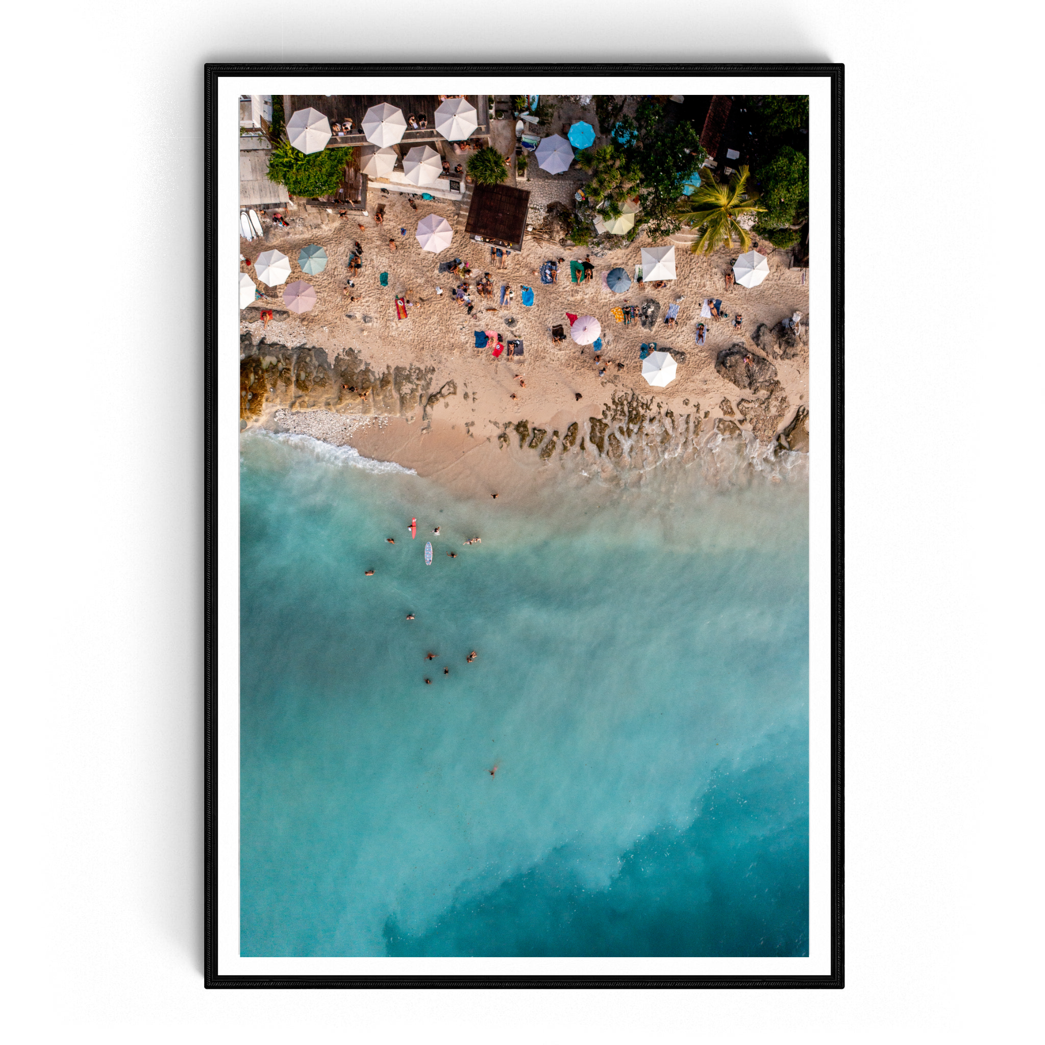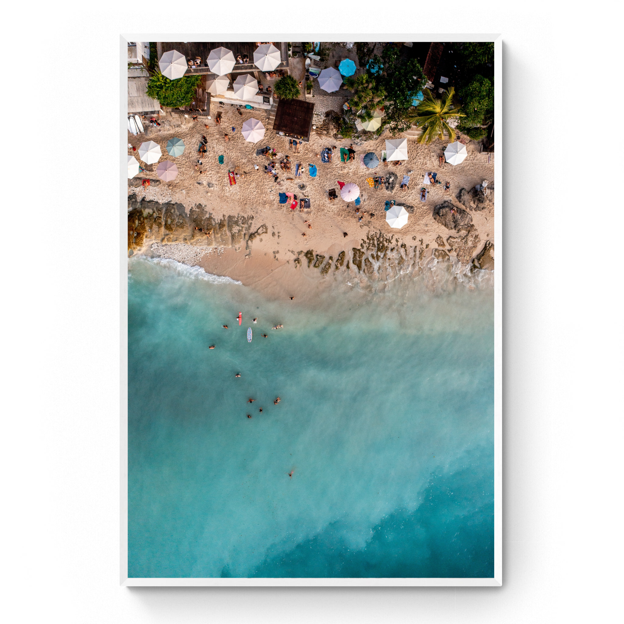 One of our favourite places in Bali! A place to gather with friends for surf, sunset and seafood on the beach! This Ariel image captures the essence of this magical spot which can bring back a nostalgic memory of your own or ad colour and life into your space!
