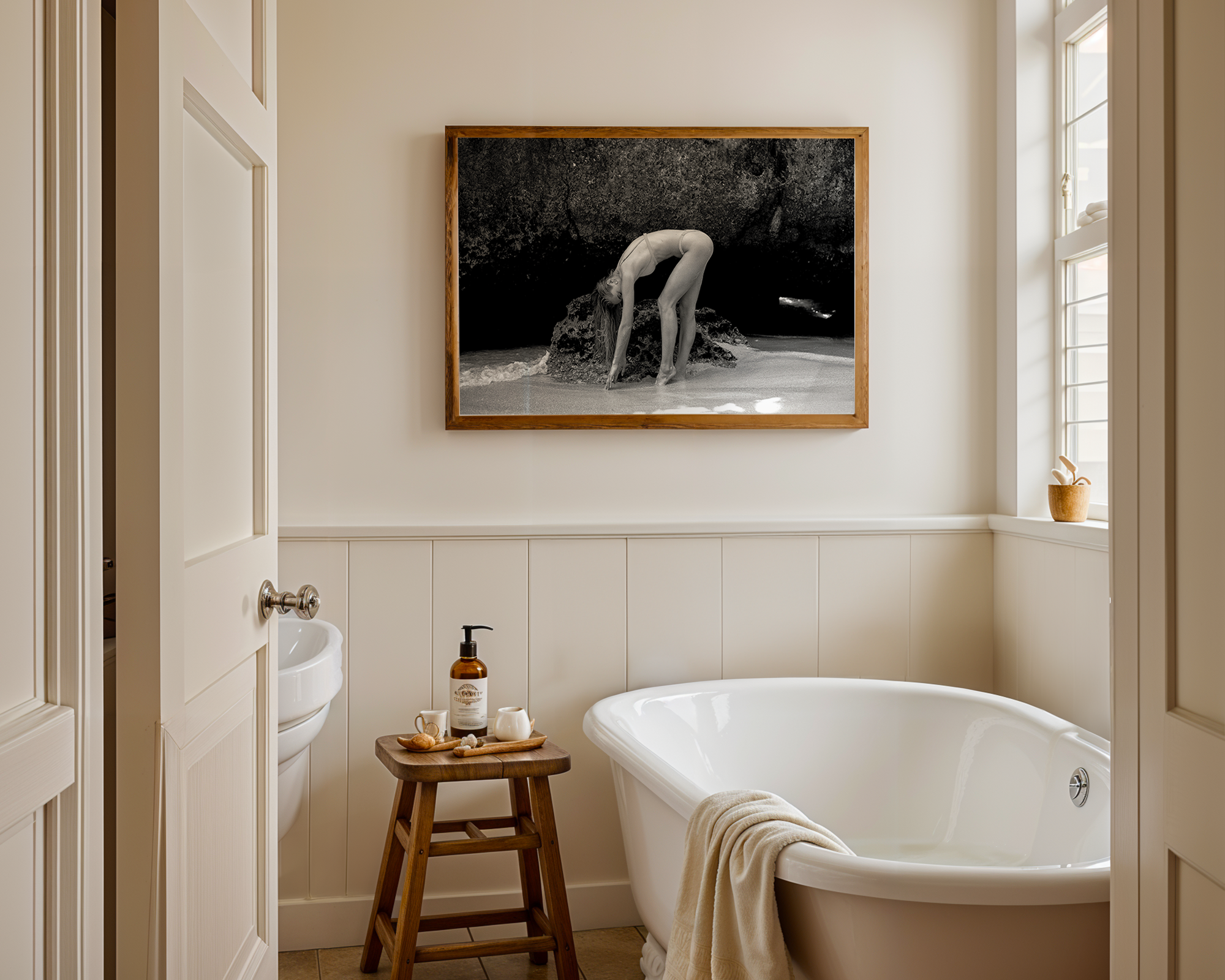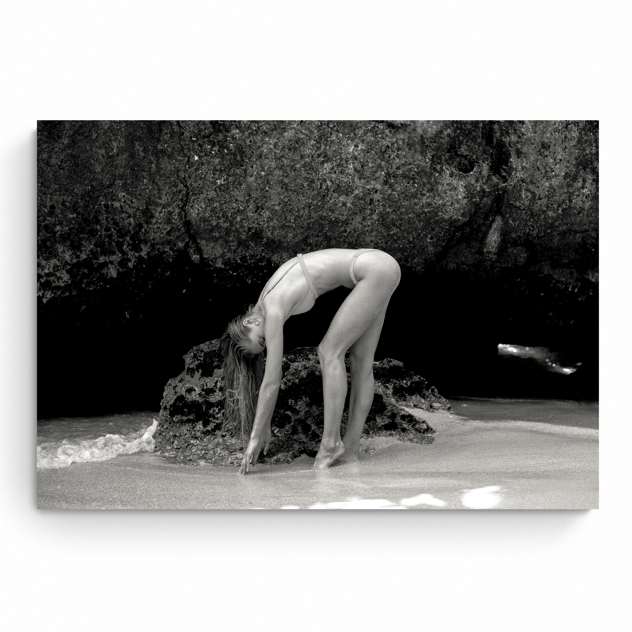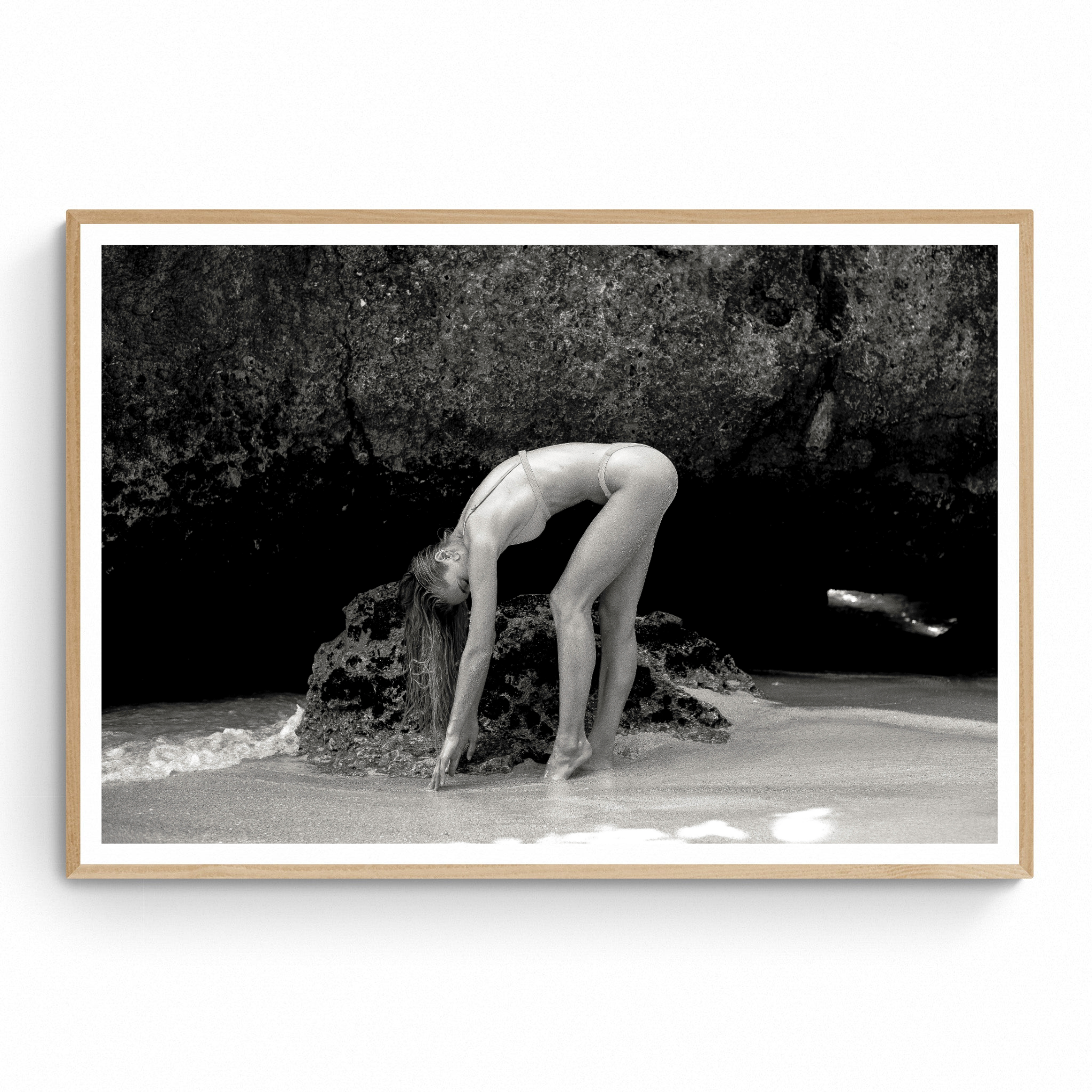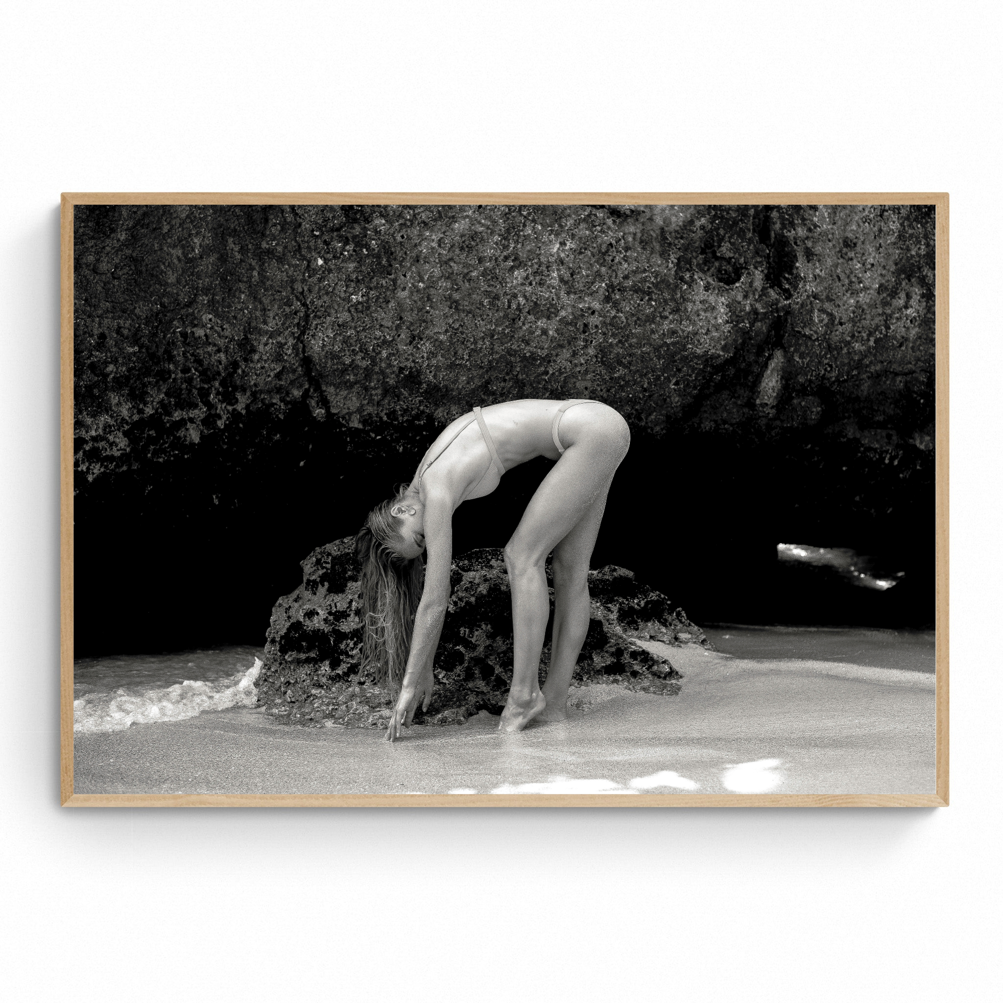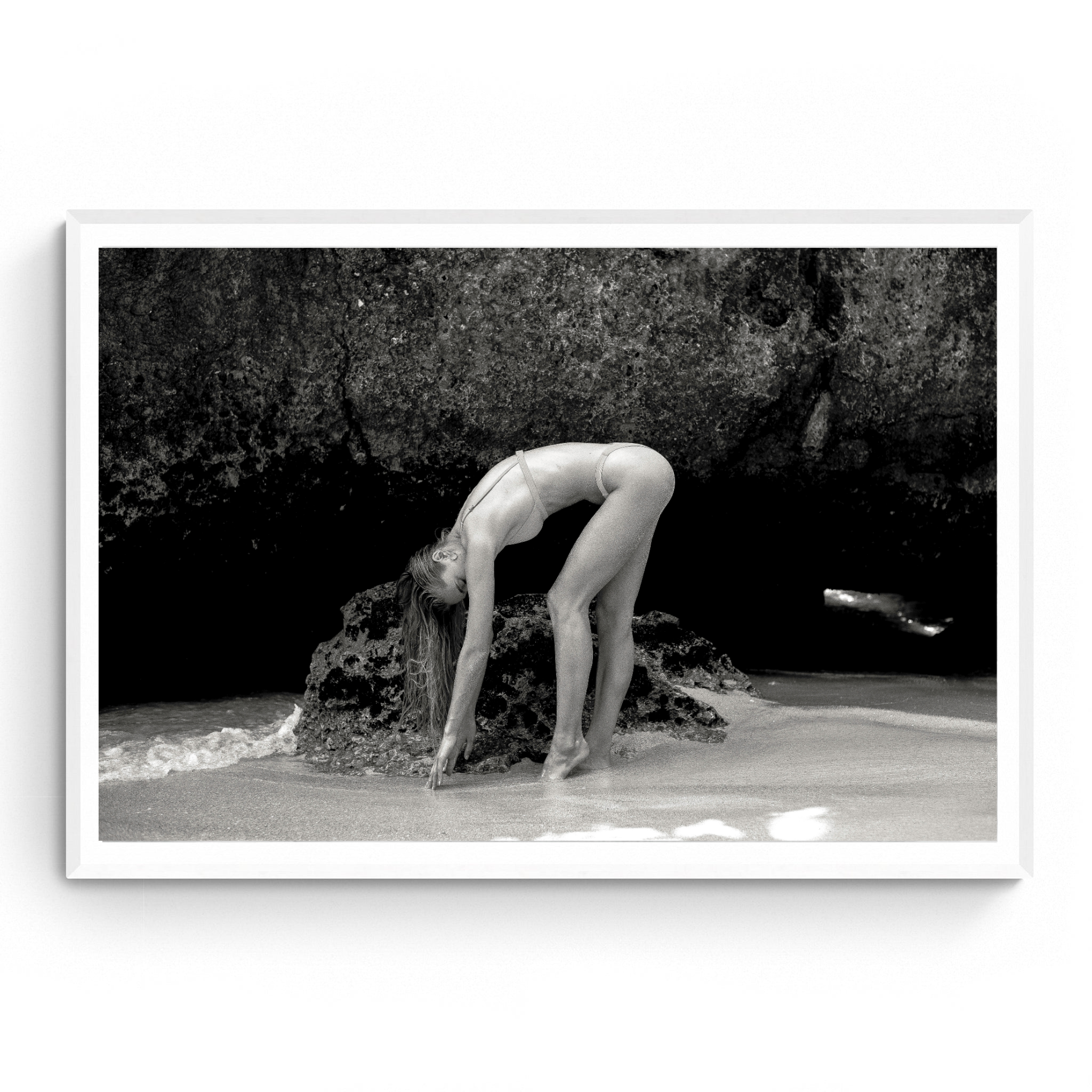Taken on a trip to Bali long before it became home. We were exploring in aw, everywhich way we turned we saw beauty. This image was captured in Uluwatu when we were exploring the caves. The light, the sand, the contrast was the perfect setting to capture this unplanned pose.