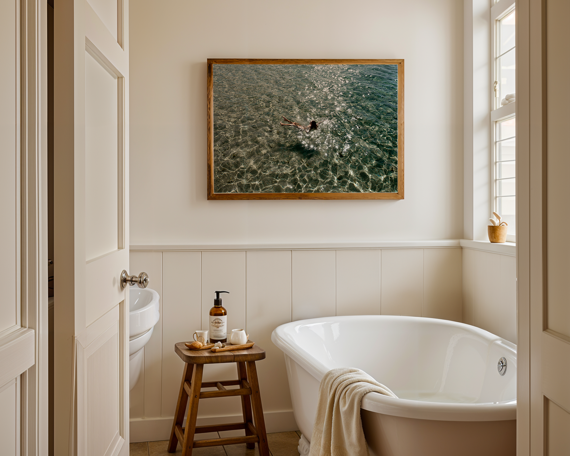 There’s something magical about the serenity of early morning swims, and in this moment, the calm, clear Bali water feels like a peaceful embrace. As the light of sun dances on the surface, she floats effortlessly, lost in the quiet beauty of the world around her. It’s a gentle reminder of the peaceful connection between self and nature, where everything slows down, and time feels suspended.
