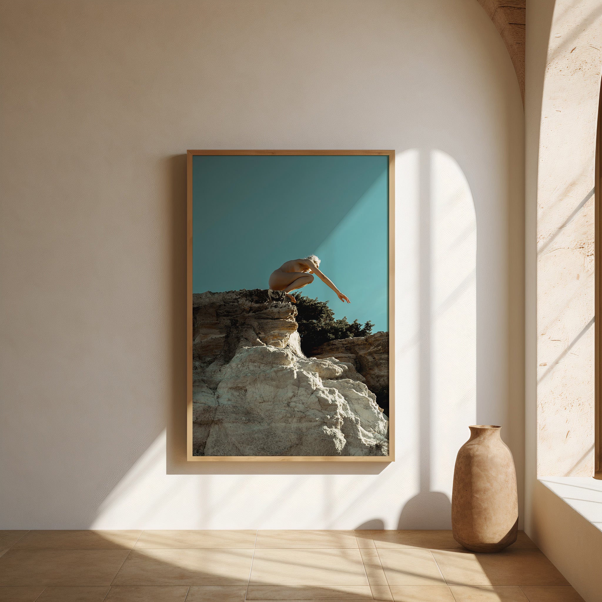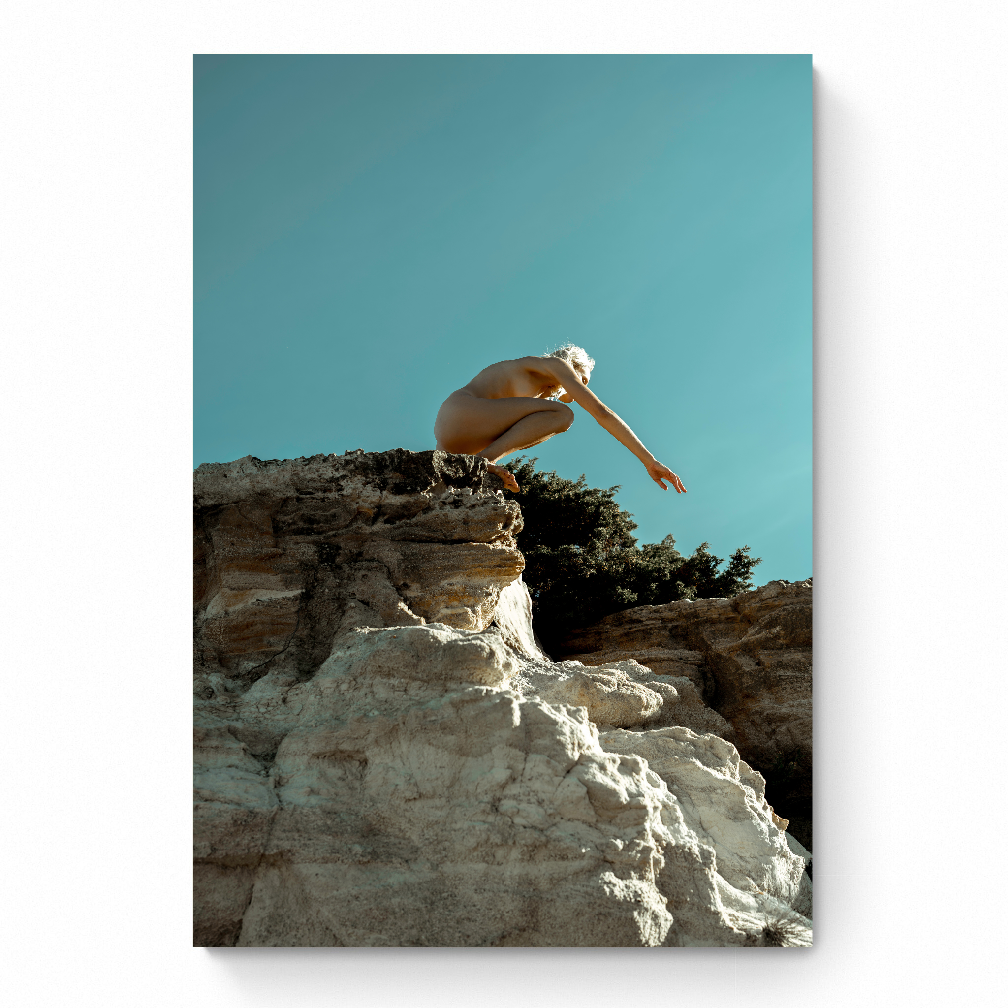 A moment of fearless play—poised on the edge, ready to leap. Sunlight kisses the skin, the wind whispers adventure, and the world below waits. A dance between gravity and freedom.