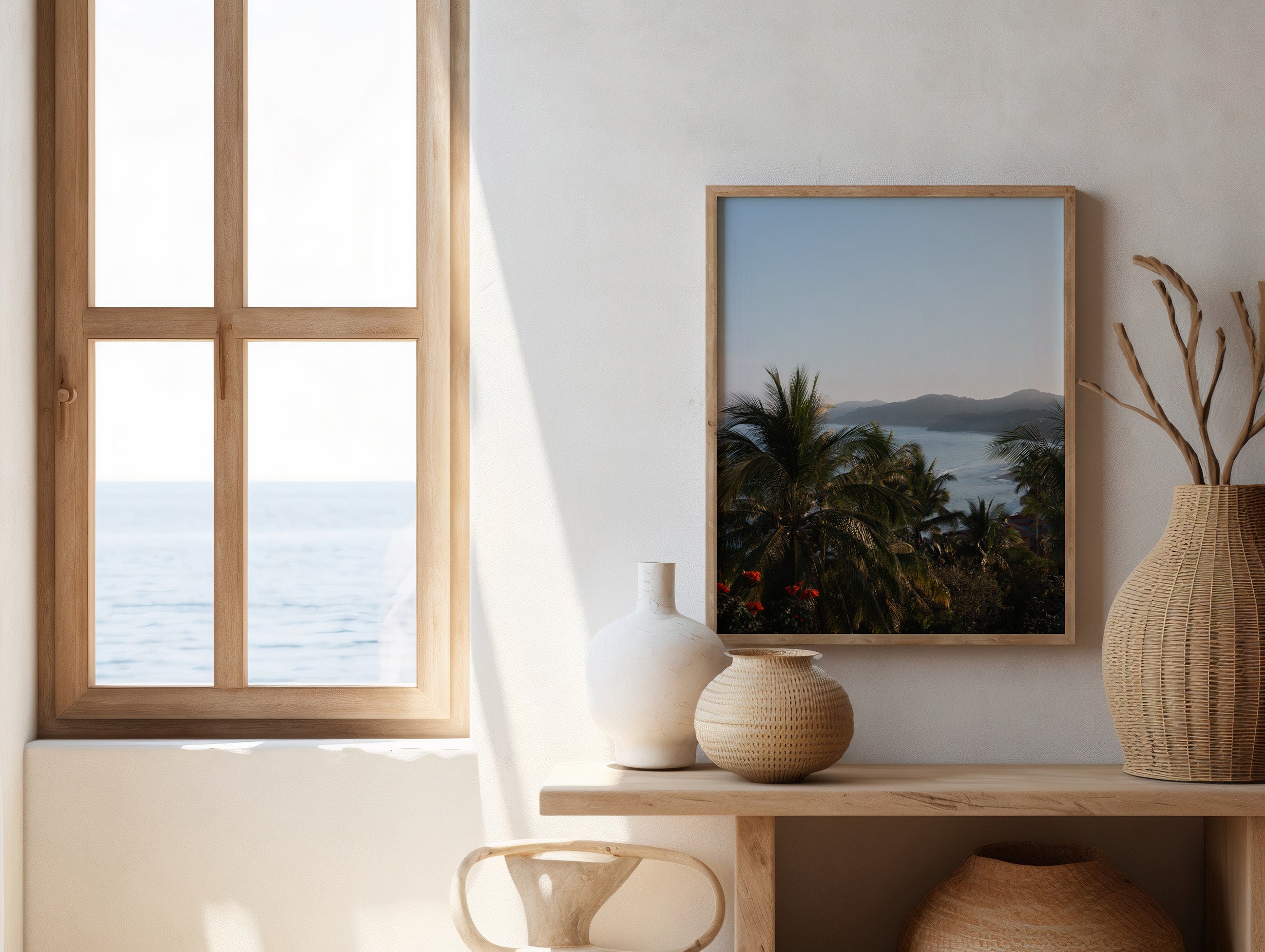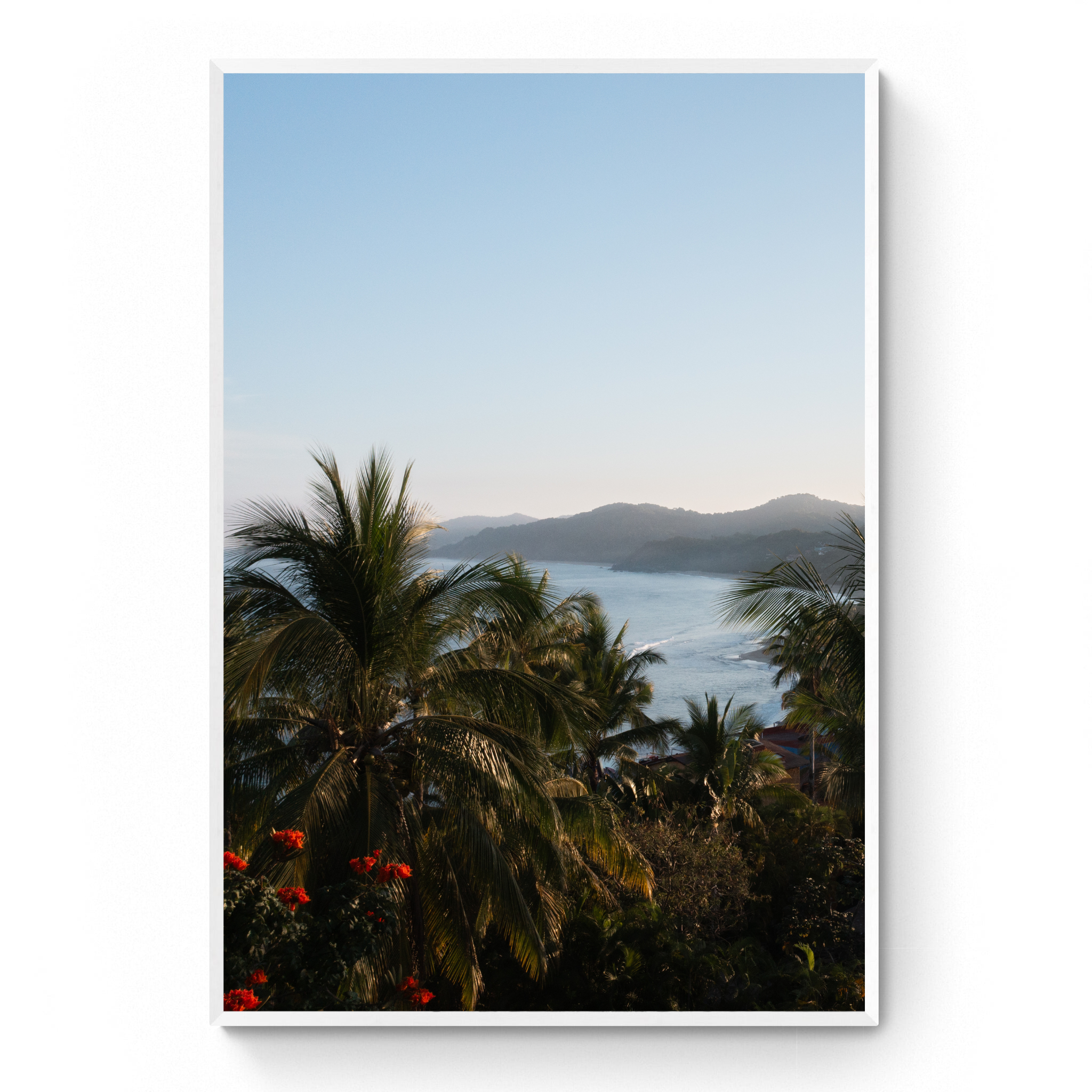 A peaceful sunrise over Sayulita’s coast, captured on an early morning surf check. This print adds a coastal and tropical touch to any space.